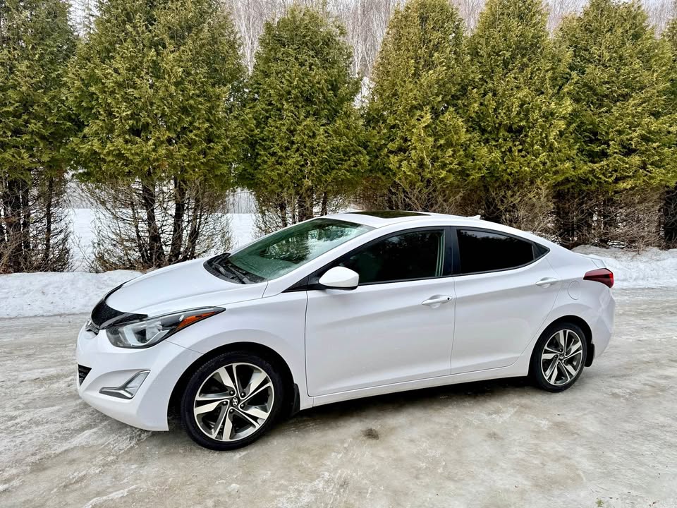 This is a 2016 Hyundai Elantra GLS, a compact sedan renowned for its reliability, fuel efficiency, and value. Finished in white with a black interior, this vehicle is distinguished by its single-owner history and excellent maintenance. It has been inspected, certified, and features a clean CARFAX report with no accidents. The inclusion of rust-proofing treatment and two sets of tires further enhances its value proposition.