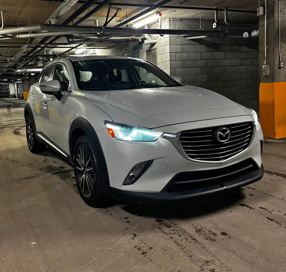 This is a 2016 Mazda CX-3 AWD, a subcompact crossover SUV that combines Mazda's signature engaging driving dynamics, stylish design, and premium features in a nimble, city-friendly package. Finished in a white exterior with a black leather interior, this CX-3 is exceptionally well-equipped, featuring Apple CarPlay, heated leather seats, a sunroof, a head-up display (HUD) , adaptive headlights, and remote start. With 100,123 km, a clean title with no major accidents, and no significant mechanical issues, this vehicle has been well-maintained with recent oil change, brake replacement, and up-to-date rust-proofing. It comes with two full sets of tires (winter and summer) and is ready to drive immediately.