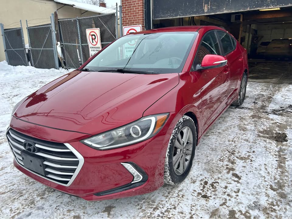 This is a 2017 Hyundai Elantra, a compact sedan that combines stylish design, impressive fuel efficiency, and an extensive list of premium features. With 128,000 km and finished in a striking red exterior with a gray interior, this vehicle is exceptionally well-equipped—far exceeding typical expectations for its class. It features leather upholstery, heated front and rear seats, a heated steering wheel, a panoramic sunroof, Apple CarPlay, GPS navigation, blind-spot detection, rear parking sensors, and even a head-up display (HUD). This Elantra is winter-ready with heated seats, heated steering wheel, remote start, and two full sets of tires included. It has no major mechanical issues and is ready to drive immediately.