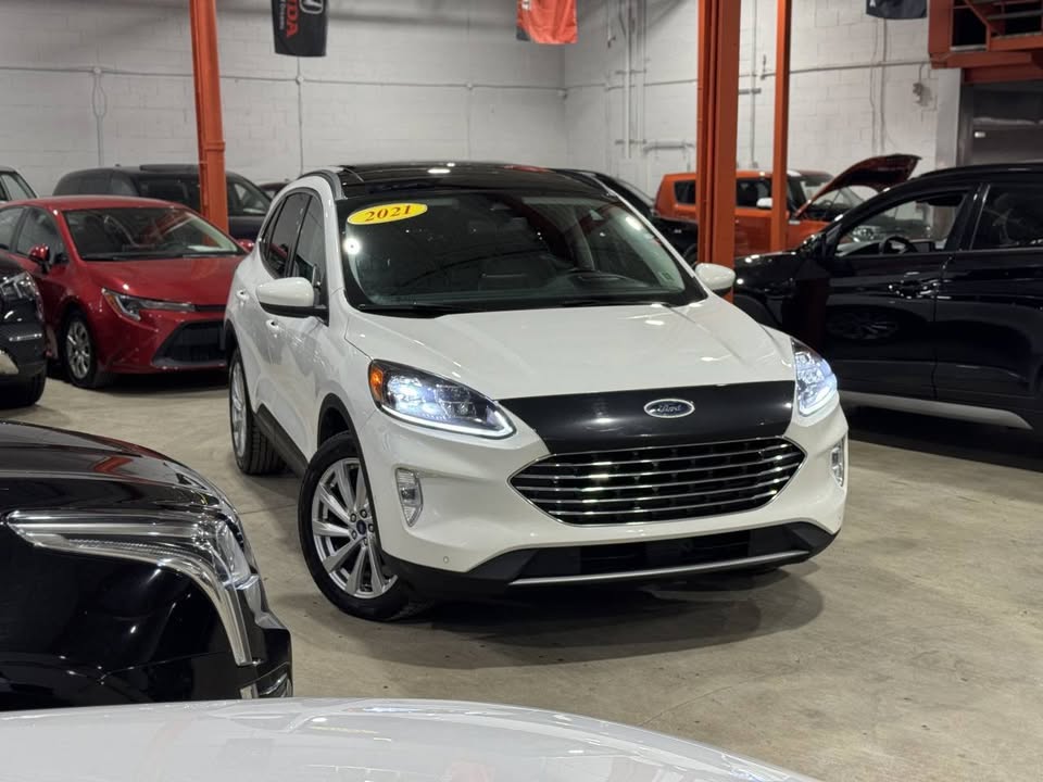 This is a 2021 Ford Escape Titanium Hybrid AWD, a compact hybrid SUV that combines exceptional fuel efficiency, advanced technology, and premium comfort in a versatile package. As the Titanium trim—the highest available—this Escape is fully loaded with luxury features. Finished in a white exterior, this vehicle is equipped with all-wheel drive (AWD) , a hybrid powertrain, a panoramic sunroof, leather interior, heated seats and steering wheel, remote start, GPS navigation, and alloy wheels. With 183,869 km, a clean title with no accidents, and no major damage or issues, this Escape has been well-maintained and is ready for the road. It represents an exceptional value for buyers seeking a fuel-efficient, well-equipped, and winter-ready SUV.