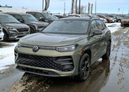 This is a 2025 Volkswagen Tiguan Comfortline R-Line Black Edition, a compact SUV that combines European driving dynamics with striking visual appeal. Finished in a distinctive green exterior with a...